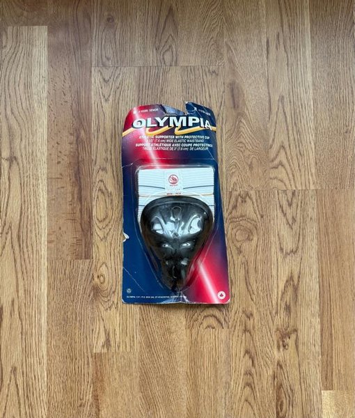 Olympia sportskydd med skyddande kopp. Elastiskt midjeband, 7.6 cm bred.