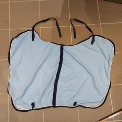 Fint handbroderad med fodrad baksida. Bredd 20cm, längd 29cm, med frans 40cm. Beslag ingår