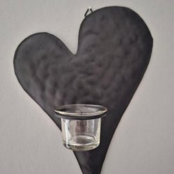 En hjärtformad väggljusstake med en glascylinder för värmeljus.