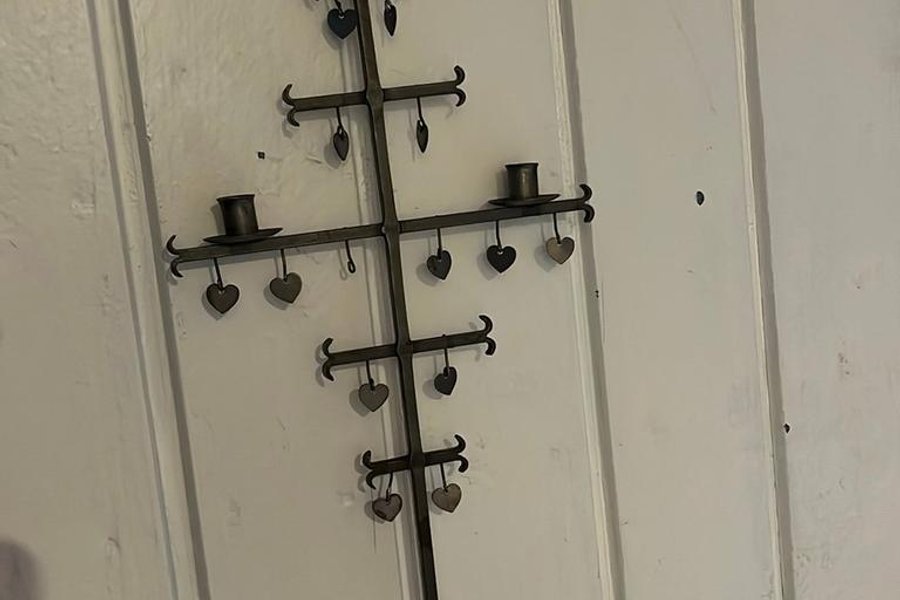 Dekorativ ljusstake i smide från Ystad metall med hjärtan.