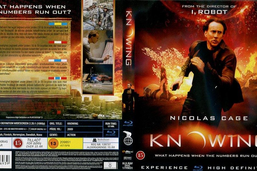 Actionthriller från 2009 av Alex Proyas med Nicolas Cage, Rose Byrne, Ben Mendelsohn, Chandler Canterbury, Liam Hemsworth, Terry Camilleri, Adrienne Pickering, Danielle Carter, Angie Diaz, Nadia Townsend, Bianca Cutrona, Sally Anne Arnott, Anna Anderson och Lara Robinson. Alex Proyas är regissören bakom I, Robot och The Crow har skapat en andlöst spännande och oförutsägbar domedagsthriller och Nicolas Cage spelar huvudrollen med samma bravur som i Face/Off, Con Air och National Treasure. Knowing kapade direkt förstaplatsen på biotoppen i USA och nu har även du möjlighet att få reda på sanningen om vår dystra framtid!