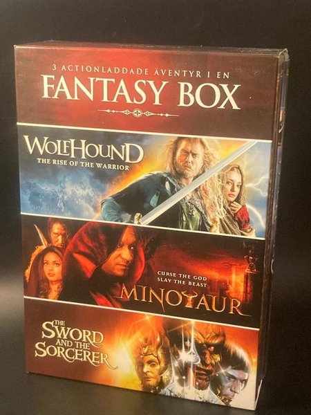 Fantasy Box med tre actionfyllda filmer: Wolfhound: The Rise of the Warrior, Minotaur, och The Sword and the Sorcerer.