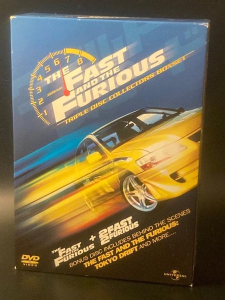 Triple Disc Collectors Boxset med The Fast and the Furious och 2 Fast 2 Furious. Bonus disc inkluderar bakom kulisserna, The Fast and the Furious: Tokyo Drift och mer.
