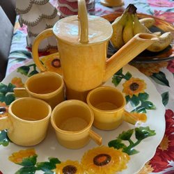 Två charmiga krukor från Höganäs med stålställning, okänt årtionde.