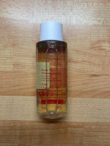 Clarins Total Cleansing Oil, en rengöringsolja med extrakt av gentiana och citronmeliss från Alperna. Flaskan innehåller 50 ml.