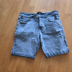Svarta jeanshorts med hög midja och mycket stretch. Sparsamt använda så i väldigt fint skick. Obs ena kanten nedtill är dock inte fastsydd som den är i andra benet, utan går alltså att vika ner. Men enkelt att sy fast om man vill. Storlek S.