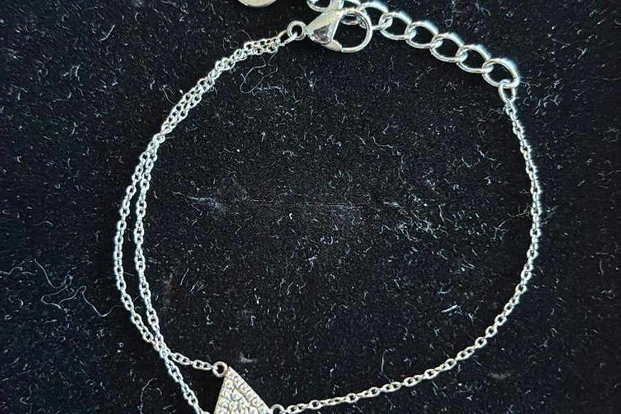 Fint silverfärgat armband med en liten triangelformad detalj. Armbandet har en justerbar kedja med ett litet hänge.