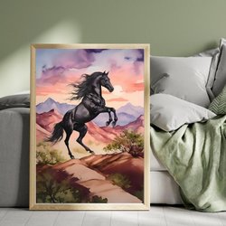 Stilren och uttrycksfull affisch med svart häst. Ett tidlöst djurmotiv som förmedlar styrka, frihet och elegans – perfekt för både modern och klassisk inredning.