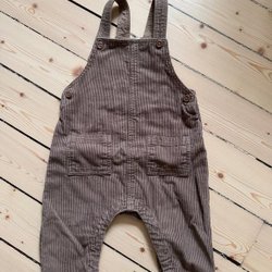 Hängselbyxor i manchester i en jättefin beige/brun färg, två fickor fram och knappar på sidorna. I mycket fint skick. Storlek 80