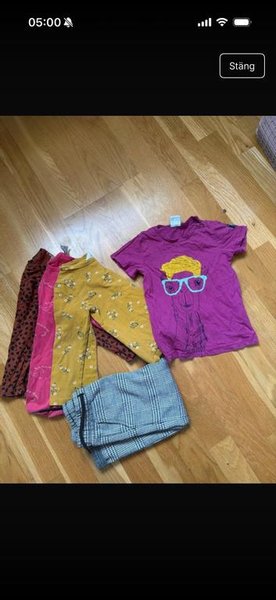 Ett par byxor, 3 långärmade toppar, en T-shirt.