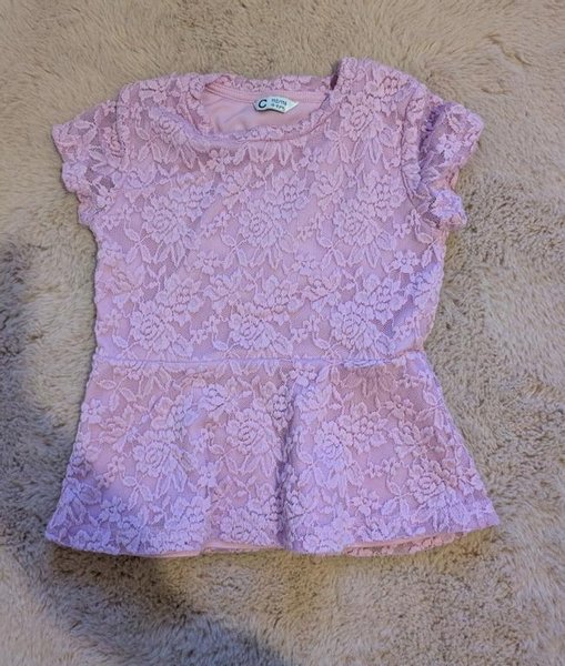 Söt, ljuslila topp med spetsmönster och korta ärmar.