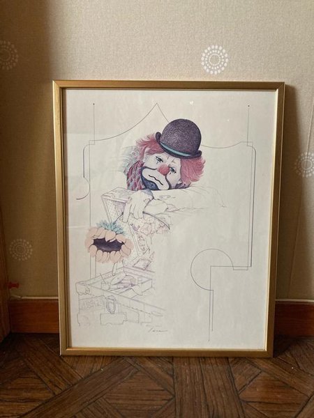 Tavla ledsen clown av konstnären William W Tara. Vintage. Mycket gott skick! Mått 30*37 cm