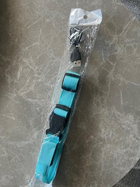 Halsband med blå ljus. Kan bara tryck på lampa där lyser blå.