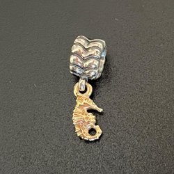 Helt ny berlock med en sjöhäst från Pandora, guldpläterad sjöhäst, berlocken är i silver. Mycket vacker! RARE, sällsynt. Nypris ca 1800:-