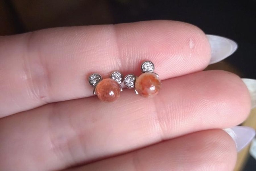 Ett par örhängen i Musse Pigg design med Solsten.