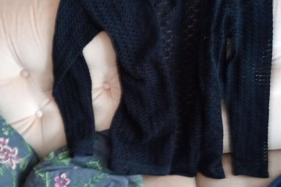 Svart, stickad kofta med långa ärmar.