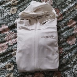 Vit/Grå melerad hoodie från Element med dragkedja och teddyfoder. Jackan har en mycket fin design, har två framfickor och en liten metalllogotyp på ena fickan. Detaljerade ärmar. Storlek XS.