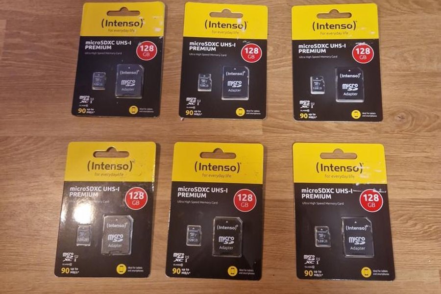 Intenso microSDXC UHS-I Premium minneskort med en kapacitet på 128 GB. Detta Ultra High Speed minneskort har en läshastighet på upp till 90 MB/s och levereras med en adapter. Perfekt för surfplattor och smartphones.OBS 6 Stycken