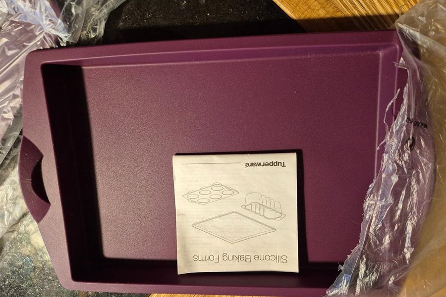 Tupperware bakform med instruktionsblad, silikonform, innermått ca. 25x18cm